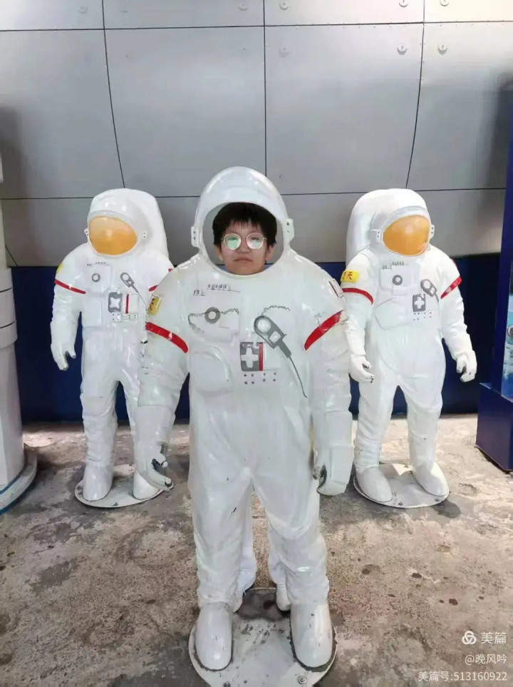 这里是有关宇宙的,对此我充满了好奇,而最令我震撼的,是宇航服的模型。